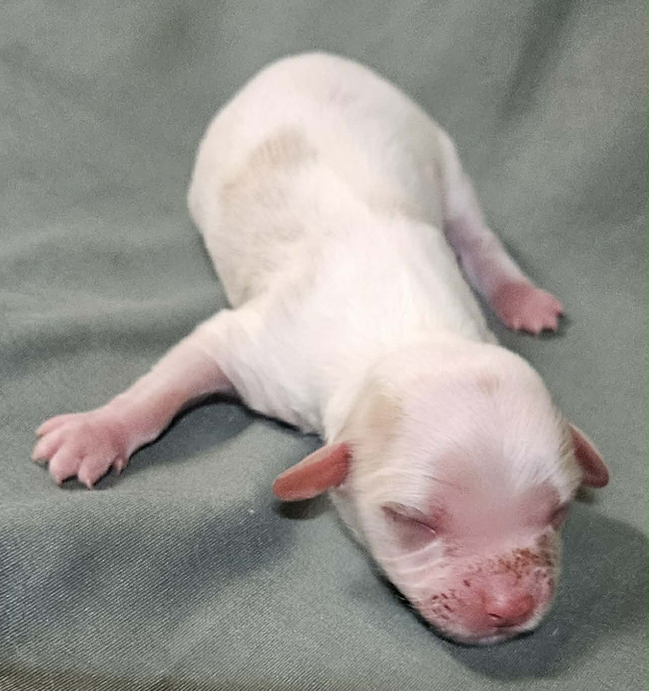 White with tan spots, Girl Puppy - Birth